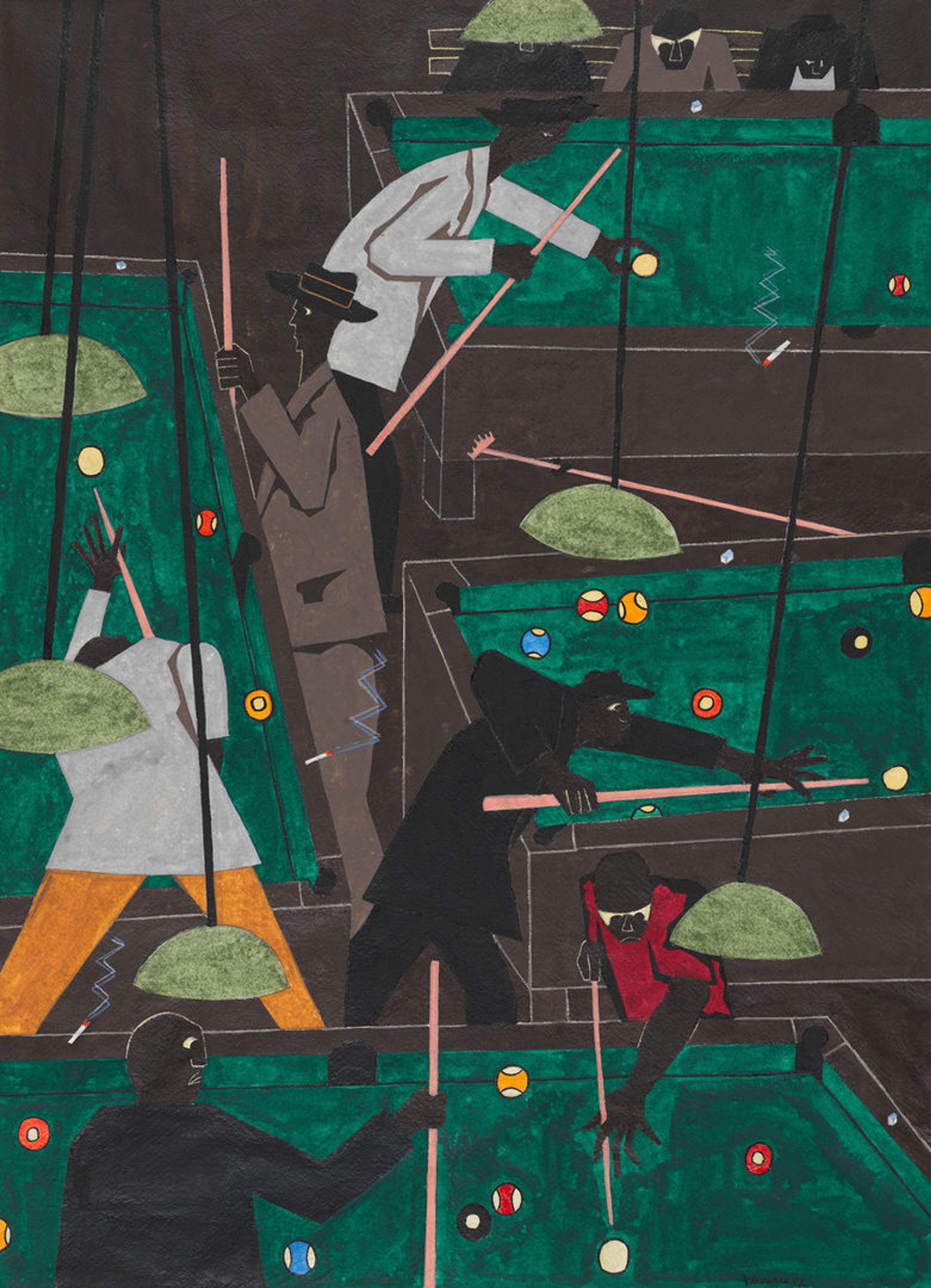 LYNNE: An important painting that reflects this kind of scene is Jacob Lawrence’s Pool Parlor, made when the artist was in his twenties.